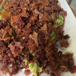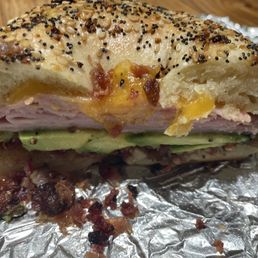 - For a unique twist, try the Dino-mite bagel topped with avocado, bacon, and Chipotle Tabasco.