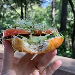 Yummy bagels for breakfast the garden one with sun dried tomatoes the pastries are awesome